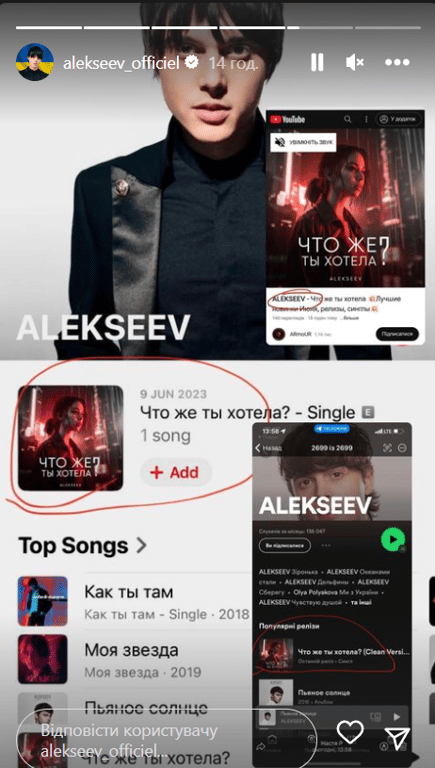 Виконавець хіта "Пьяное солнце", співак Микита Алєксєєв (Alekseev), розповів про спробу росіян дискредитувати його. Від імені 30-річного артиста невідомі опублікували нову композицію, до якої Микита не має жодного відношення.