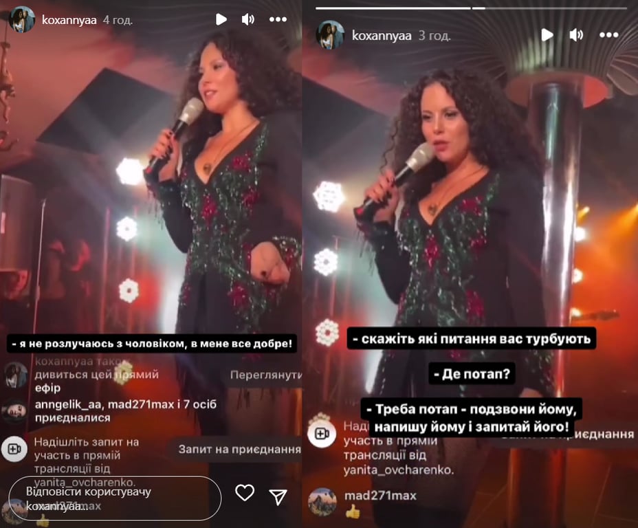 Каменских выступает в Киеве. Скриншоты: Instagram/koxannyaa
